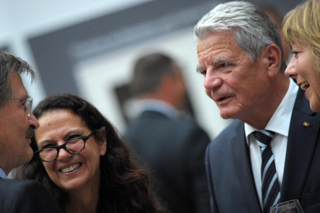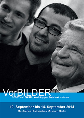 Zwei Jahre hat es gekostet. Zwei Jahre intensiver Vorbereitung. Es mussten ein Konzept erstellt, Orte gefunden, Mitwirkende koordiniert, Überzeugungsarbeit geleistet werden. Eine lange Zeit für ein solches Fotoprojekt. Wie es der Journalist Ronny Blaschke zu formulieren weiß sind Angelika und Bernd Kohlmeier die kreativen Köpfe. In der Ausstellung „VorBILDER – Sport und Politik vereint gegen Rechtsextremismus“ steckt viel Engagement. In ihr steckt nicht nur Können und Präzision, sondern auch die Überzeugung, etwas bewegen zu können. Und schaut man hinter die Kulissen, entdeckt man eine weitere engagierte Person. Marie-Luise Würtenberger vom Bundesministerium des Innern, in dessen Auftrag die Ausstellung erstellt wurde. Sie ist die Projektleiterin und man spürt, dass ihr diese Ausstellung und die damit verbundene Botschaft eine Herzensangelegenheit sind. Umso aufgeregter sind die drei Ausstellungsmacher an diesem 10. September 2014: Denn heute ist der Tag der Eröffnung, der Tag, an dem Joachim Gauck den Startschuss zu der bundesweiten Wanderausstellung gibt. Hier im Deutschen Historischen Museum in Berlin spricht er vor zahlreichen Gästen und sagt: „Demokratie und Freiheit sind keine Selbstverständlichkeiten und sie müssen immer wieder neu errungen und auch verteidigt werden. Wir, die demokratischen Bürger, tragen gemeinsam Verantwortung dafür, dass Hass und Intoleranz keinen Nährboden und keine Zustimmung finden und dass jeder in unserem Land selbstbestimmt und ohne Angst leben kann.“
