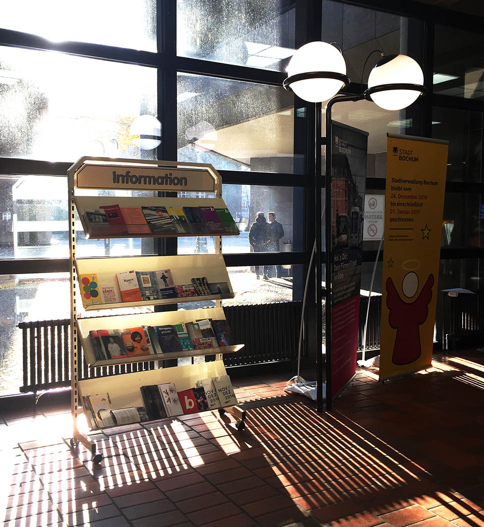 Der Ort, an dem die Ausstellung derzeit steht, ist ideal auf das Thema zugeschnitten, denn die Volkshochschule Bochum ist ein Schmelztiegel. Hierher kommen Menschen aller Generationen, Gesellschaftsschichten, Konfessionen und politischen Orientierungen. Menschen, die ihre Wurzeln in Deutschland, oder auch in anderen Ländern haben. Sie alle kommen, um gemeinsam zu lernen. Es ist ein besonderer Ort der Begegnung. Leiter Thomas Ratenhof und Geschäftsführer Ralf Werdelmann von der VHS Bochum zeigen sich erfreut über die Ausstellung und die damit verbundene rege Beteiligung, denn ein Teil ihrer Arbeit besteht derzeit darin, Einheimische und Zugewanderte zusammenzubringen und das komplexe Konzept Integration in die Realität umzusetzen.