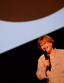 Die Vorsitzende von AsA e. V., Karin Ahrens, liest voller Rührung Zeilen eines aus Afghanistan stammenden Flüchtlings vor. Waseem Daulatzai, der durch den AsA Verein Unterstützung erfahren hat, sagte einmal zu ihr: „Ich komme aus einem Land, in dem sich Muslime gegenseitig umbringen. Nun bin ich in Bonn bei AsA und habe Menschen getroffen, die mir in einem christlichen Land im Sinne des Islam helfen.“ Das Verdienstkreuz am Bande, das ihr kurze Zeit später für ihre Arbeit verliehen werden soll und auf das sie auf der Bühne angesprochen wird, rücke da in den Hintergrund und der Mensch, das was wirklich wichtig sei, käme zum Vorschein.