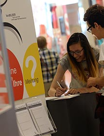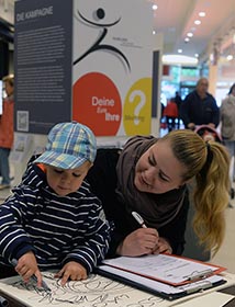 Im Sankt Annen Center ist der Andrang groß. Die Menschen gehen vorüber, weichen einander aus, drängeln sich vor. Einige bleiben stehen und lesen, denn es gibt etwas zu sehen. Die Ausstellung VorBILDER ist in Brandenburg an der Havel angelangt. 50.000 Besucher strömen in den ersten fünf Tagen in das Einkaufszentrum in dem beschaulichen Städtchen an der Havel. Was gut ist, an diesem Ort: Hier erreicht die Ausstellung einen breiten Querschnitt der Gesellschaft, denn ins Einkaufzentrum geht fast jeder. Angefangen bei dem alleinerziehenden Vater, der Rentnerin, Schülergruppen verschiedener Altersklassen bis hin zur Hochschulprofessorin. Und natürlich viele Touristen, denn Brandenburg ist in diesem Jahr ein Gastgeber der Bundesgartenschau.
