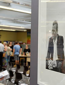 Und so lockt es bereits am Tag vor der offiziellen Eröffnung zahlreiche Besucherinnen und Besucher in die Ausstellung. Die meisten von ihnen entschließen sich dann auch gleich, ein MeinungsBILD zu machen, denn das mobile Fotostudio der Ausstellungsmacher Angelika und Bernd Kohlmeier, in dem sich jeder mit seiner Haltung positionieren kann, ist am Eingang platziert und weckt das Interesse der Menschen.