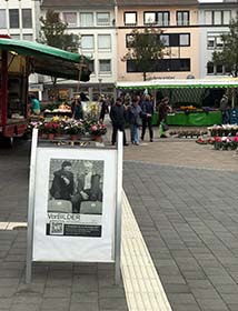 Viele MeinungsBILDER entstehen im Anschluss an die offizielle Eröffnung. Auch Jürgen und Marlies Taeter nutzen die Gelegenheit, selbst mit einem MeinungsBILD Haltung zu zeigen und Teil der Ausstellung zu werden. Auf ihrem Plakat steht: „Für Gemeinschaft und Respekt, gegen Hass, Neid und Gewalt.“ Die VorBILDER passen gut zu Düren.