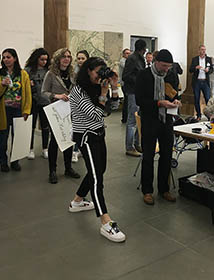 Diese Ermutigung durch Ausstellungsmacherin Angelika Kohlmeier zeigt ihre Wirkung. Nach der offiziellen Eröffnung stehen die Menschen Schlange, um mit ihrem eigenen MeinungsBILD Teil der Ausstellung zu werden. Bemerkenswert ist, dass dabei immer wieder ganz neue, ungewöhnliche Aussagen und Impulse entstehen, häufig nach lebhaften Diskussionen, denn alle Beteiligten kommen an den rund um das MeinungsBILDER-Studio aufgestellten Tischen ins Gespräch. Sie tauschen sich aus und nutzen auch die Chance, sich zu vernetzen. Die Stimmung ist gut und ausgelassen, dafür sorgen schon die jungen Ravensburger Musiker der Band NEON DIAMOND mit ihren neuesten Songs.