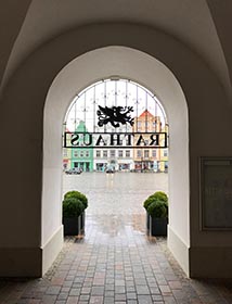 Das Rostocker Rathaus erzählt wie kaum ein anderes Gebäude von der jahrhundertealten Historie der Hansestadt. Die gotische Schaufassade mit ihrem rosafarbenen Anstrich sticht aus der Häuserreihe hervor, vor allem wenn es so richtig schön pladdert, wie es manch' ein Norddeutscher zu sagen pflegt. Wie gut also, dass es auch am Montag, am Tag der Eröffnung der VorBILDER, in Strömen regnet. Das zentral gelegene Rathaus ist derzeit Ausstellungsort von Schwarz-Weiß-Porträts von Angelika und Bernd Kohlmeier.