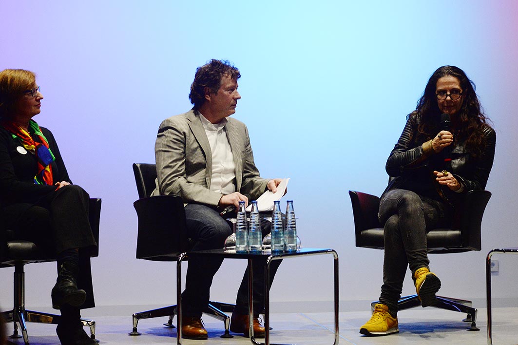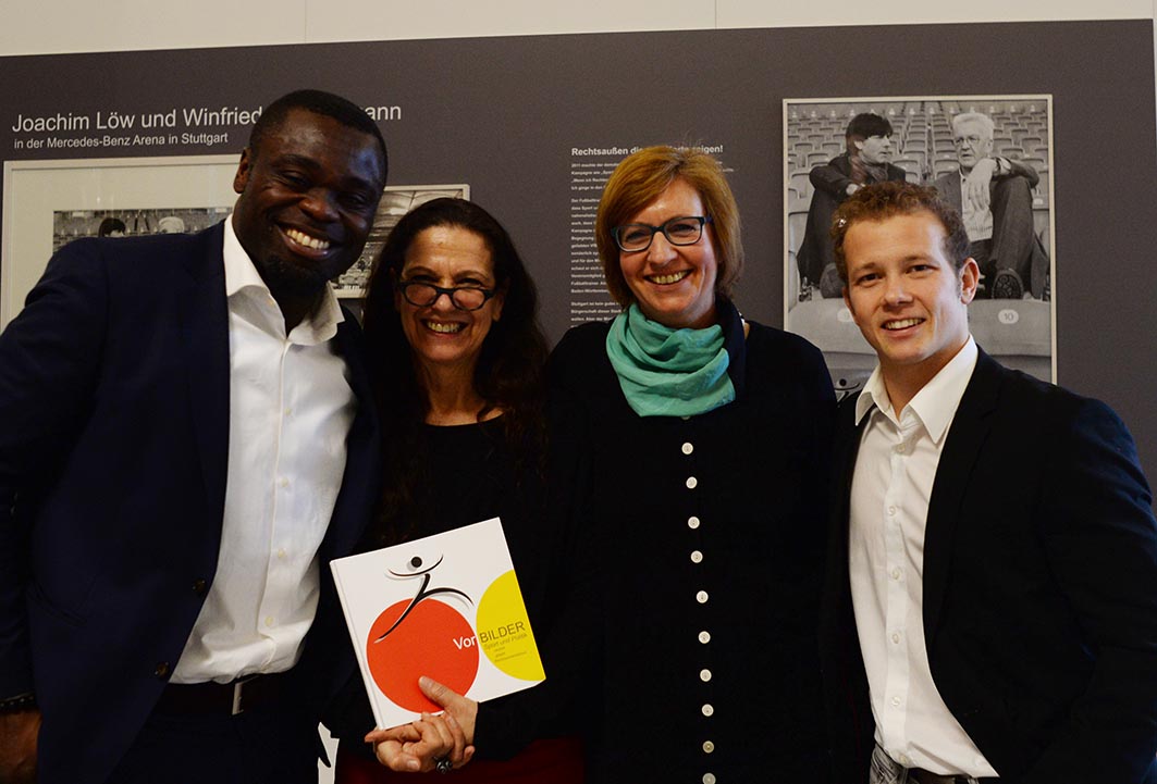 Gerald Asamoah strahlt. Der Rapper Martin Rietsch alias 2schneidig lädt den charismatischen Fußballprofi zum Mitmachen ein. Das lässt sich Gerald Asamoah natürlich nicht zweimal sagen. Die beiden bewegen sich zum Beat. Die rund 150 SchülerInnen, die gekommen sind, klatschen in die Hände. Die Stimmung ist gut. Die Stimmung ist richtig gut. Heute beleuchtet das Haus der Wirtschaft ein zweites Mal in einer Sonderveranstaltung das Thema der Ausstellung VorBILDER und hat dazu einige spannende Gäste eingeladen. Der Journalist Günther Laubis vom SWR führt durch den gelungenen Abend. Dabei sind der Turner Fabian Hambüchen und der Ministerpräsident von Baden-Württemberg Winfried Kretschmann. Er ist einer der Mitwirkenden der Ausstellung und stellt sich den gut vorbereiteten Fragen der SchülerInnen verschiedener Schulen aus dem Stuttgarter Raum. Schnell wird aus einer anfänglichen Interview-Situation eine intensive und teilweise kontroverse Diskussion mit dem Publikum. Das ist besonders schön, weil hier Politik auf viele junge Menschen trifft, ihnen auf Augenhöhe begegnet und sich Zeit nimmt zum Zuhören und Antworten. Es sind Begegnungen der eher seltenen Art. Begegnungen, die zum eigenen Engagement ermutigen und ein deutliches Zeichen gegen Rechtsextremismus setzen.
